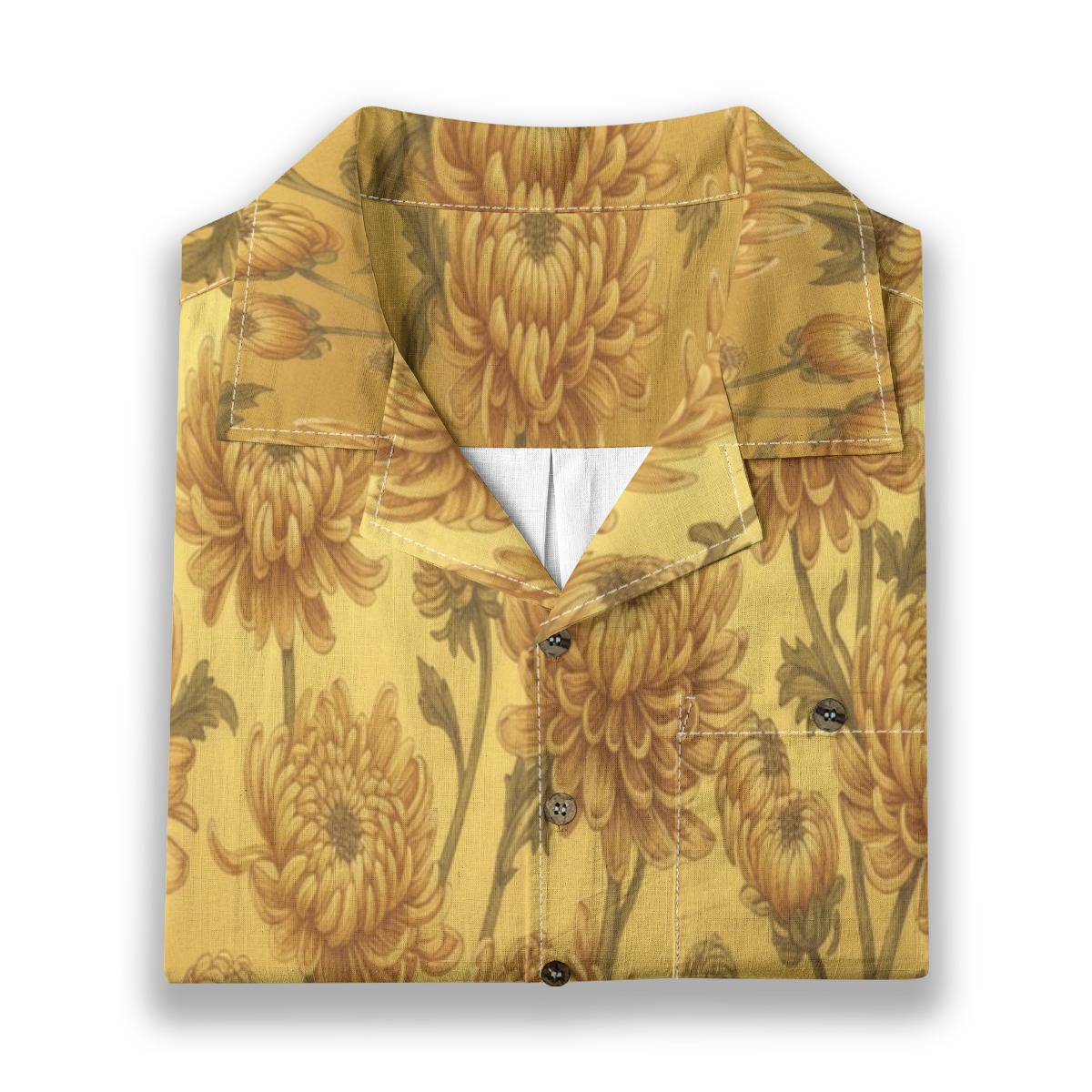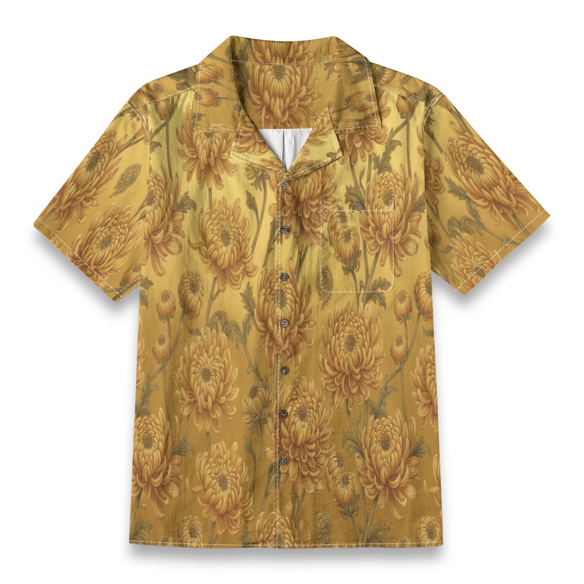 Chrysanthemum Golden Bloom Floral Aloha Shirt