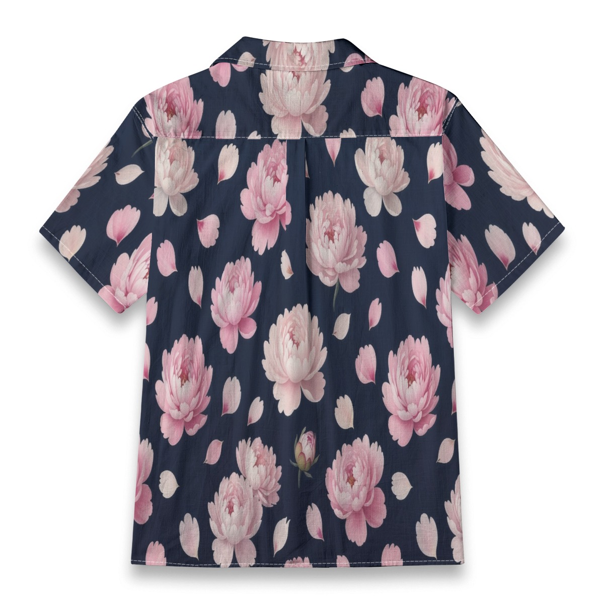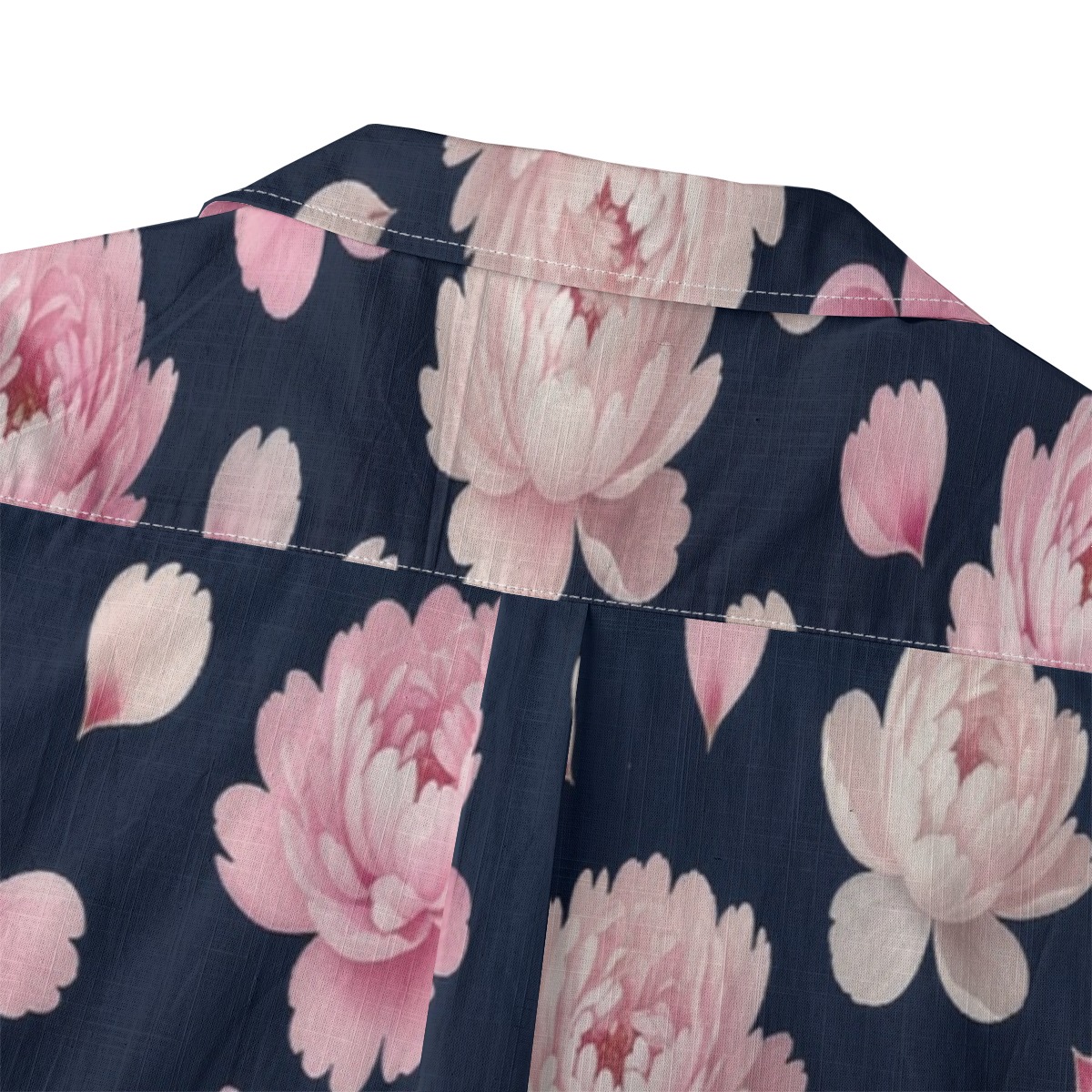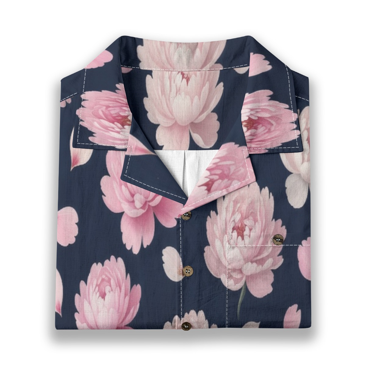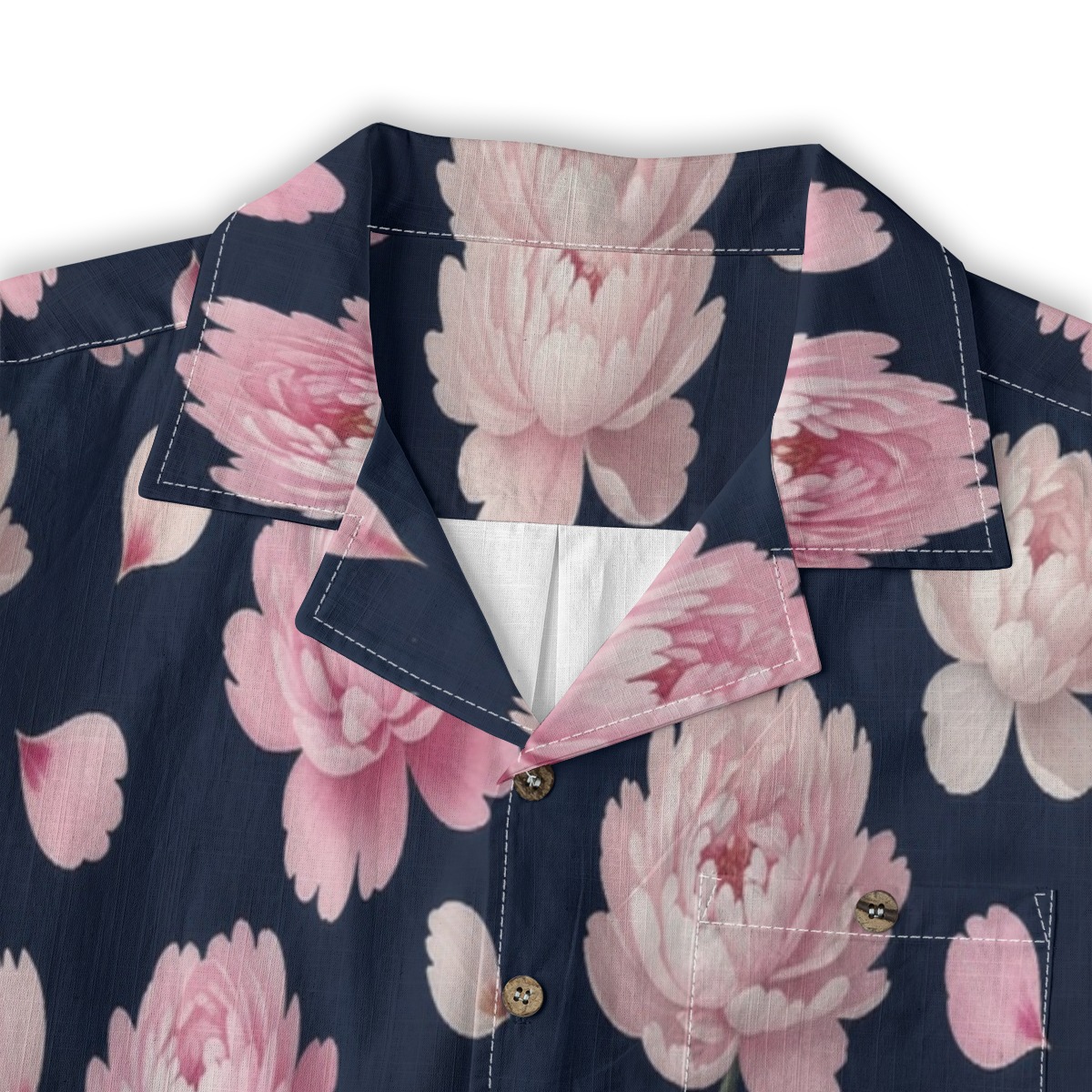 Peony Bloom Dark Floral Elegant Aloha Shirt